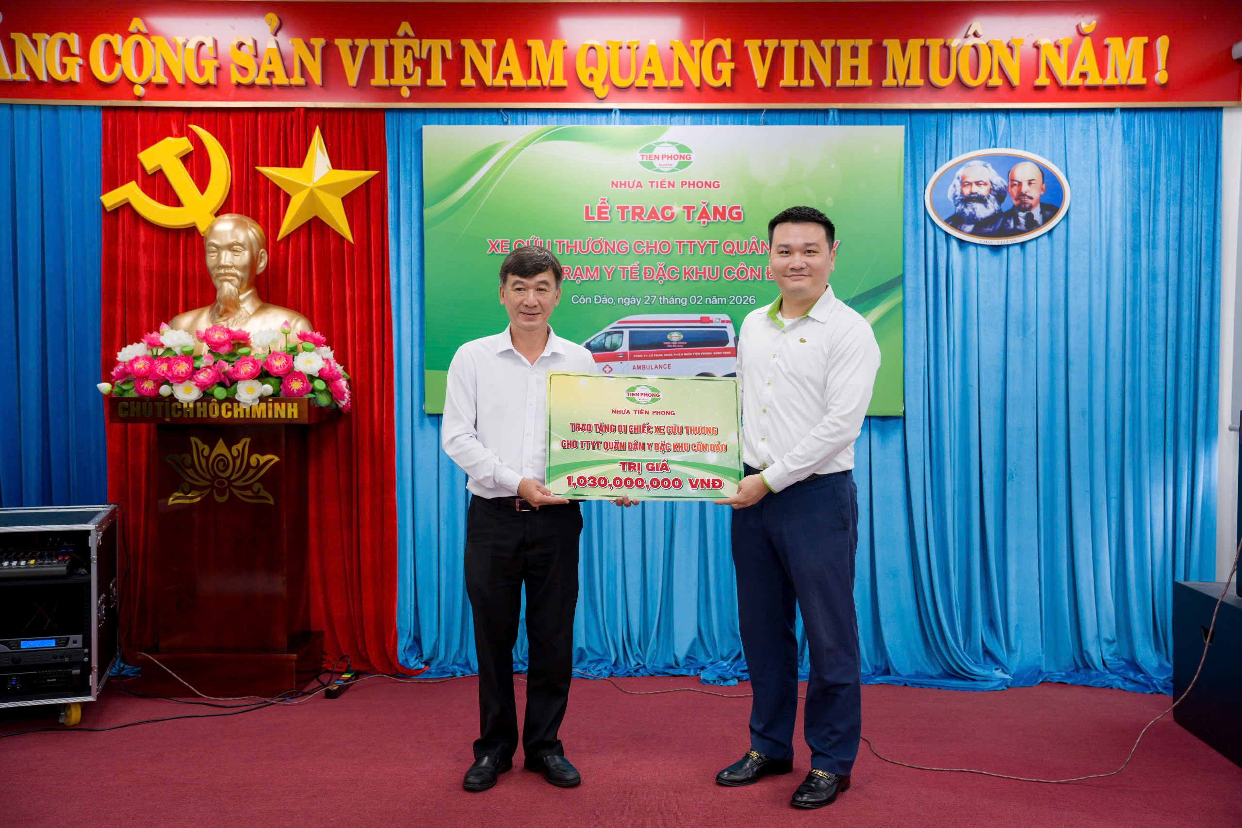 Sáng 27/2, tại Đặc khu Côn Đảo, Công ty Cổ phần Nhựa Thiếu niên Tiền Phong tổ chức chương trình trao tặng 02 xe cứu thương trị giá hơn 2 tỷ đồng cho Trung tâm Y tế Quân Dân y và Trạm Y tế Đặc khu Côn Đảo, góp phần tăng cường năng lực cấp cứu, vận chuyển bệnh nhân và củng cố hệ thống y tế tại địa bàn có vị trí địa lý đặc thù, cách xa đất liền. Nhân dịp kỷ niệm 71 năm Ngày Thầy thuốc Việt Nam (27/2/1955 – 27/2/2026), lãnh đạo Công ty cũng đã gửi lời chúc mừng, thăm hỏi và trao tặng những phần quà ý nghĩa tới đội ngũ y, bác sĩ đang ngày đêm công tác tại tuyến đảo.